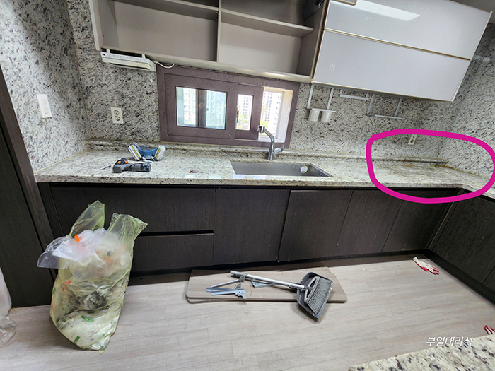 이번에 부일대리석에서는 평택 파라곤 아파트 40평형 주방 상판을 천연대리석으로 전체 교체하는 시공을 진행했습니다.