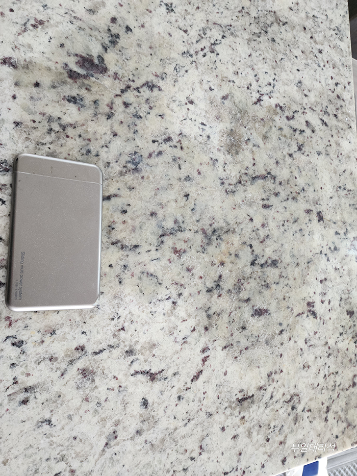 - 기존 대리석 상판의 세월에 의한 변색과 생활 오염이 심한 상태